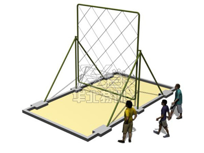 整體尺寸為4.326米×5.05米×5米高。繩網(wǎng)由網(wǎng)架和支架構(gòu)成。網(wǎng)架高4.5米寬4米