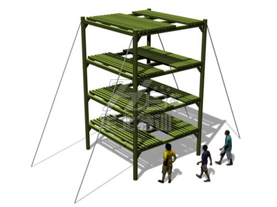 利用兩腿蹬力與兩臂支撐力依次完成對各樓層的攀登,然后從另一端或中間逐層下樓,以鍛煉受訓(xùn)者攀登樓房的能力,增強其在高層建筑物上活動的適應(yīng)性。