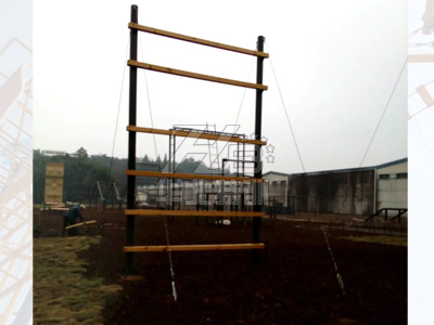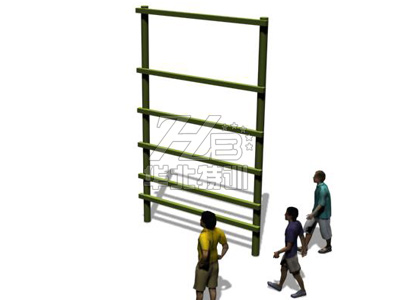 高5米,寬3米,兩側(cè)支柱上固定6條橫木,間隔由下至上分別為50厘米、75厘米、80厘米、90厘米和130厘米。下設沙坑。