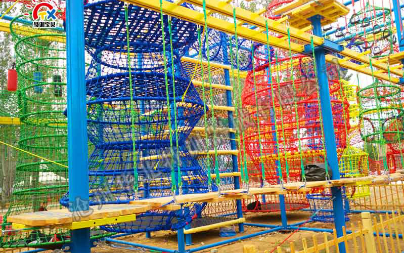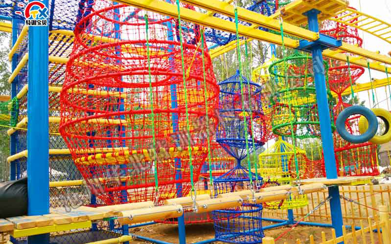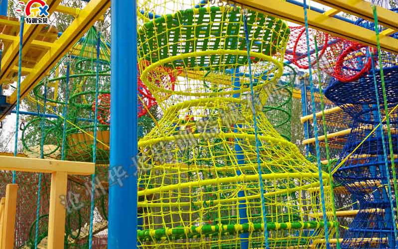 兒童繩網(wǎng)探險:是兒童拓展訓練采用的一種形式。能鍛煉青少年兒童手腳力量,攀爬能力,手眼協(xié)調(diào)能力,平 衡能力,增加膽量,勇氣,具有強身健體,鍛煉精神意志等作用。