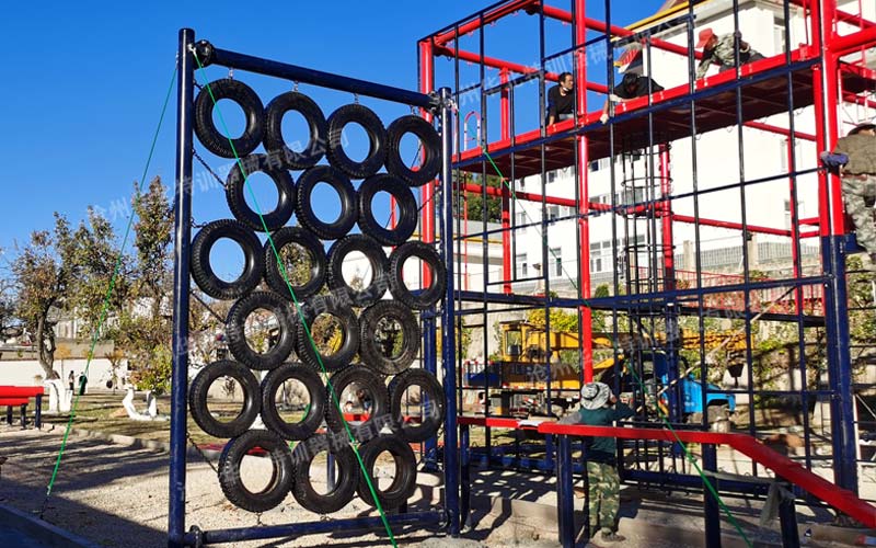 此訓(xùn)練場(chǎng)主要包含繩索救援訓(xùn)練架,消防200米滅火障礙。