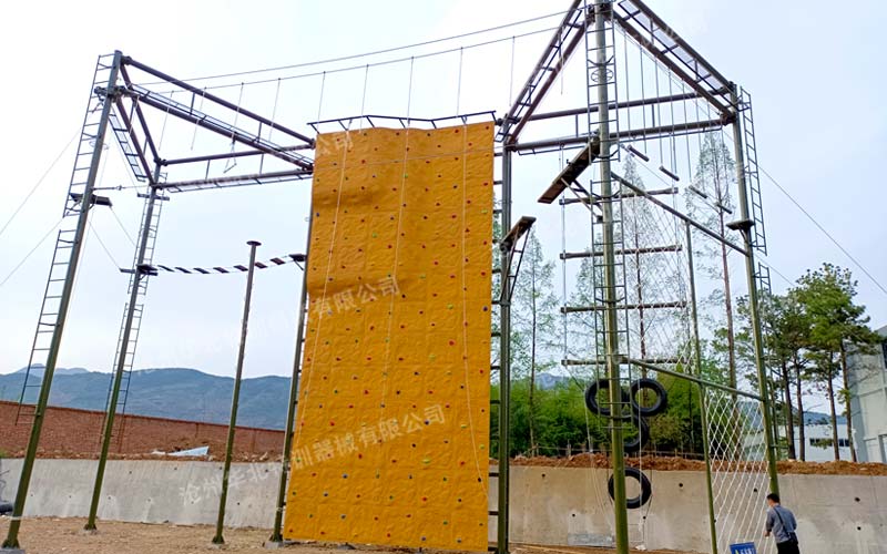 陜西漢中某景區(qū)拓展訓(xùn)練基地主要建有高空拓展器械及畢業(yè)墻。此款高空拓展設(shè)備由我公司根據(jù)客戶場地情況和需求設(shè)計定制,采用組合柱和雙橫梁結(jié)構(gòu)設(shè)計,相比常規(guī)配置,穩(wěn)定性更高,占地面積更小。