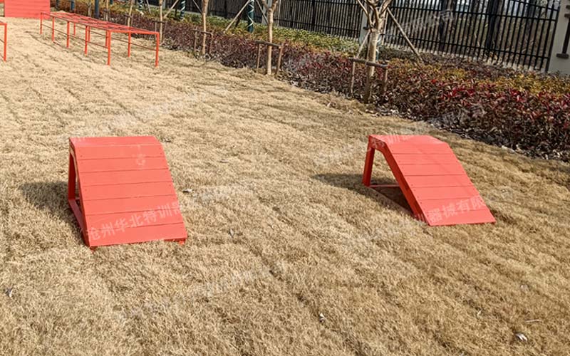 兒童國(guó)防軍事障礙賽單道場(chǎng)地長(zhǎng)50米×寬2.5米。通常為雙道并列設(shè)置。項(xiàng)目依次為獨(dú)木橋、高欄、斜坡、地籠、矮墻、高板6個(gè)項(xiàng)目。