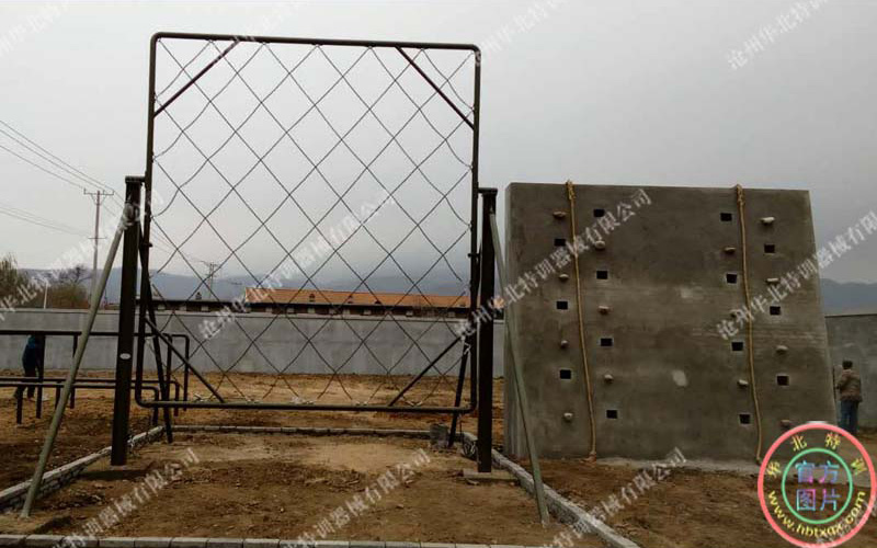 400米渡海登島是我國經(jīng)典部隊(duì)訓(xùn)練項(xiàng)目之一,一般場(chǎng)地分為4道,一共10個(gè)訓(xùn)練項(xiàng)目。是一種為了提高渡海登島作戰(zhàn)訓(xùn)練及受訓(xùn)人員體能的拓展訓(xùn)練組合。其中包括的拓展訓(xùn)練項(xiàng)目依次排列為軟橋、螺旋梯、高低橫木、繩網(wǎng)、輪胎攀臺(tái)、搖擺平臺(tái)、晃動(dòng)橫梯、跨網(wǎng)、阻絕墻、模擬沙灘。