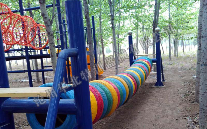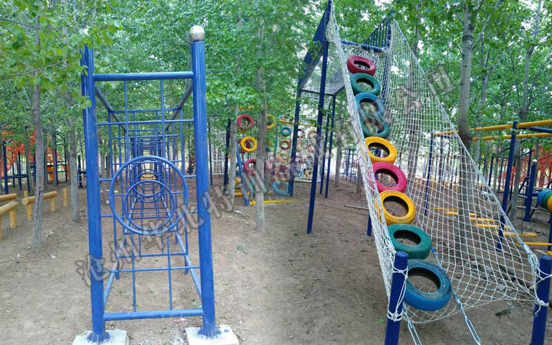體能訓(xùn)練:勇攀高峰、吊樁、輪胎破、鉆網(wǎng)滑梯、時(shí)空穿越、獨(dú)木橋、輪胎橋、蕩橋、滾筒、輪胎破、輪胎網(wǎng)井、障礙過欄、獨(dú)木橋、艱難旅程、中空組合。