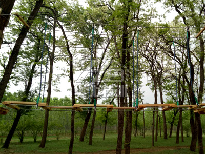 叢林探險(xiǎn)是通過在樹木與樹木之間搭建各種不同風(fēng)格,難易程度不同,超強(qiáng)刺激的拓展項(xiàng)目,利用專業(yè)的安全裝備體驗(yàn)高空穿行,感受樹上攀爬與林間穿越的刺激,能有效的提高參與者的勇氣和自信心?梢允沟皿w驗(yàn)者體會(huì)到不同于普通地面環(huán)境下的穿越感受。