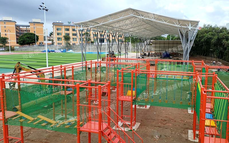規(guī)格:占地42米長(zhǎng)×6米寬,主體長(zhǎng)41.5米×寬6米×高8米。 包含項(xiàng)目:獨(dú)木橋、翹板橋、橫渡天梯、吊索橋、斷橋、攜手并進(jìn)、相互依存、禮讓通行、網(wǎng)墻(2…