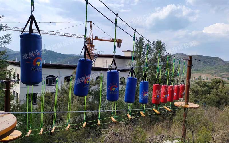 陜西漢中某景區(qū)拓展訓(xùn)練基地主要建有高空拓展器械及畢業(yè)墻。此款高空拓展設(shè)備由我公司根據(jù)客戶場(chǎng)地情...