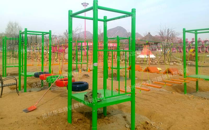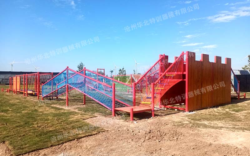此拓展基地由華北特訓(xùn)設(shè)計(jì)、生產(chǎn)、施工安裝,F(xiàn)已建設(shè)完成并投入使用。此拓展基地主要建設(shè)有叢林探...
