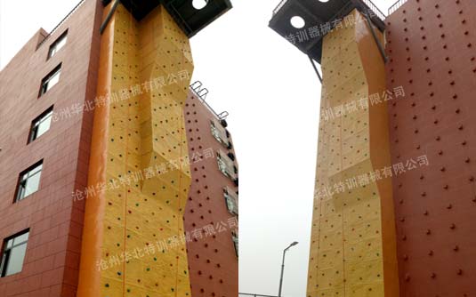 此類攀巖墻采用玻璃鋼樹(shù)脂復(fù)合材料制成,不含任何對(duì)人體有害的化學(xué)成分,每塊巖板0.9×0.9米,由各種不同造型的攀巖板拼接成造型豐富的整體墻面。