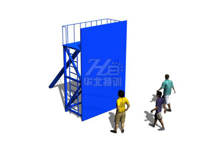 所有參訓(xùn)人員以小組為單位,通過相互配合、幫助、在最短的時(shí)間內(nèi)由四米墻正面到達(dá)頂部平臺(tái)。