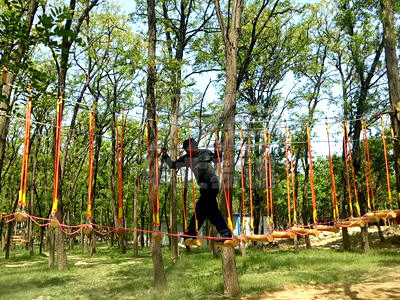 叢林探險是通過在樹木與樹木之間搭建各種不同風(fēng)格,難易程度不同,超強(qiáng)刺激的拓展項(xiàng)目,利用專業(yè)的安全裝備體驗(yàn)高空穿行,感受樹上攀爬與林間穿越的刺激,能有效的提高參與者的勇氣和自信心?梢允沟皿w驗(yàn)者體會到不同于普通地面環(huán)境下的穿越感受。