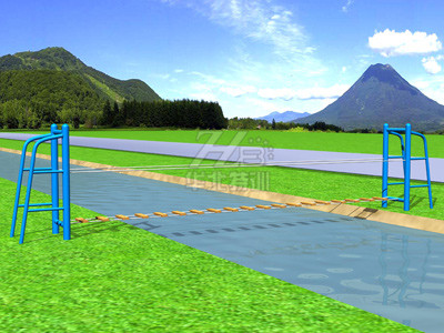 使用說明:腳踩木板抵達對岸。