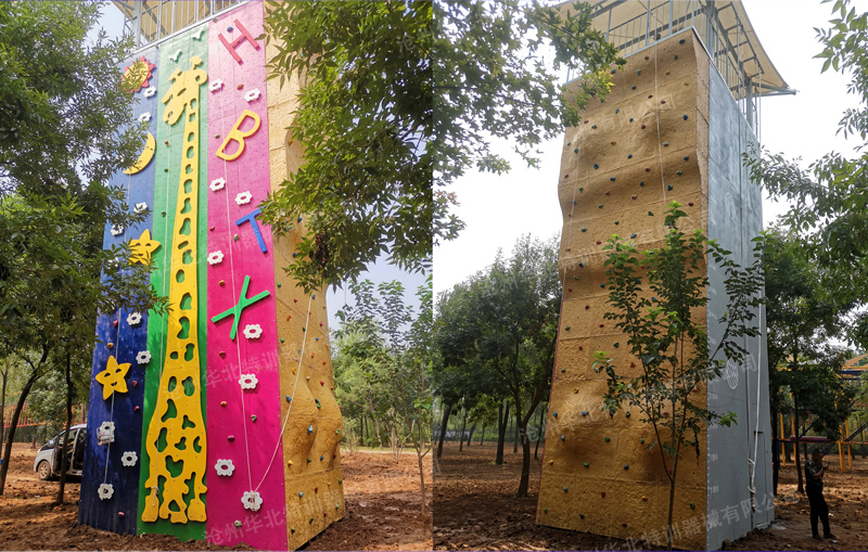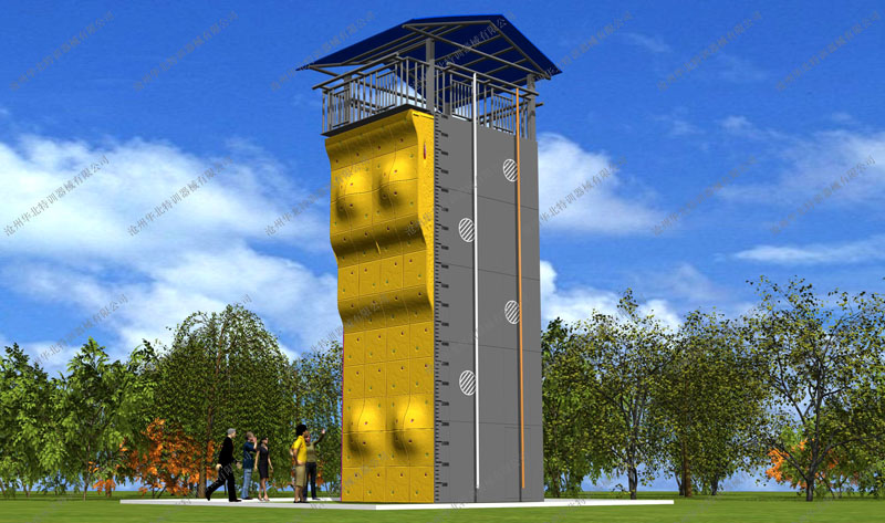 規(guī)格:總高12米(不含遮陽棚),平臺高10米。 器械含四面項(xiàng)目:造型攀巖、平面攀巖、趣味攀巖、速