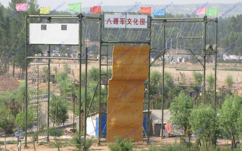 高空拓展器械: A08LB-G 。 地面拓展器材:畢業(yè)墻、雙面背摔臺(tái)、地面蕩木橋、地面相互依存、梅花樁、旋梯、轉(zhuǎn)輪、浪木等。 軍體拓展設(shè)備:400百米障礙。 |
