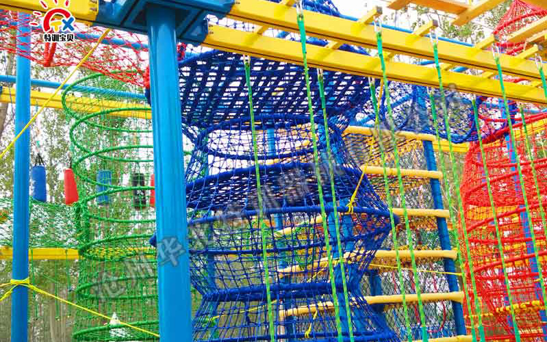 兒童繩網(wǎng)探險:是兒童拓展訓練采用的一種形式。能鍛煉青少年兒童手腳力量,攀爬能力,手眼協(xié)調(diào)能力,平 衡能力,增加膽量,勇氣,具有強身健體,鍛煉精神意志等作用。