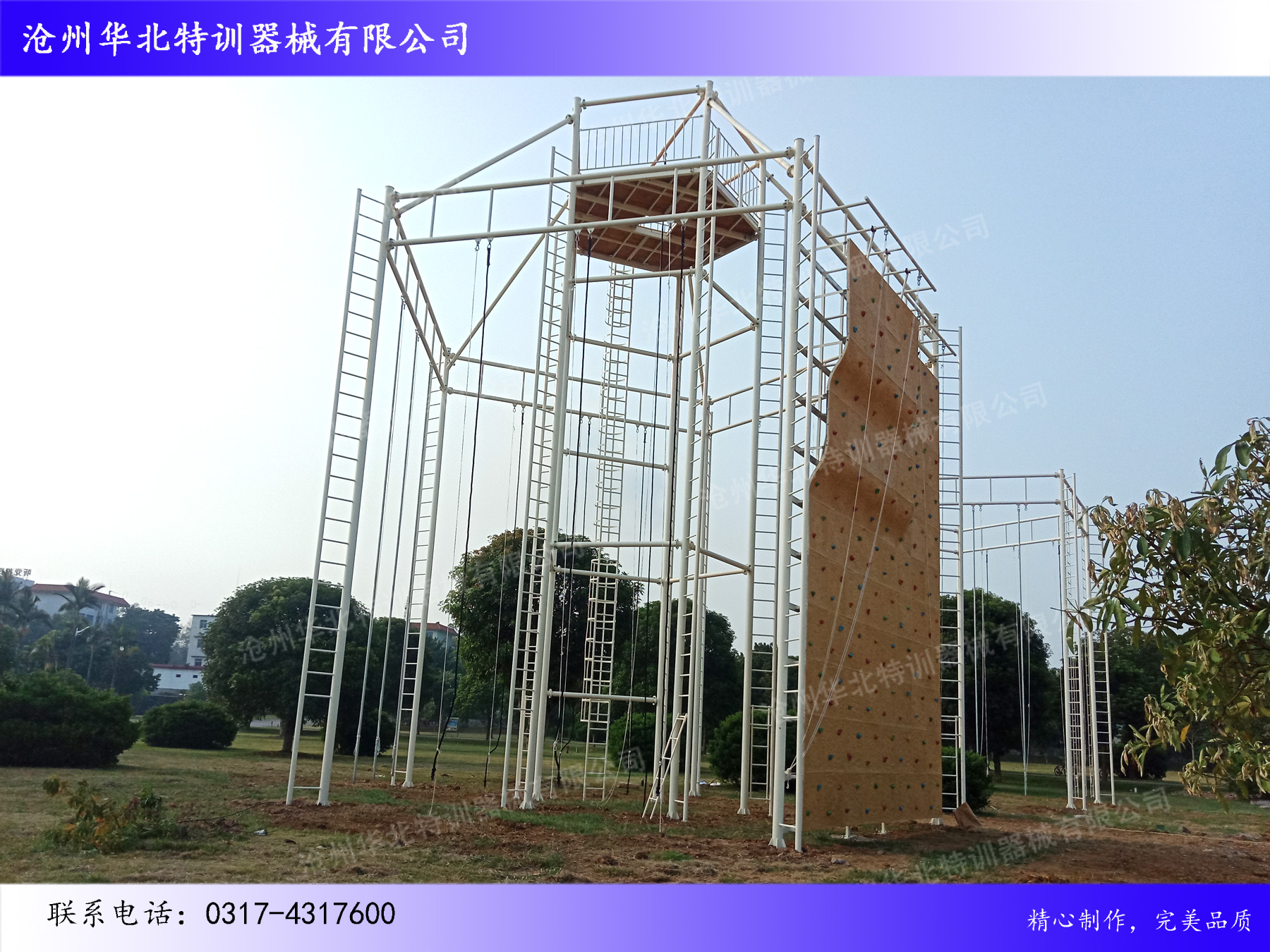 滄州華北特訓(xùn)器械有限公司經(jīng)過近二十年的發(fā)展,合作客戶已經(jīng)覆蓋軍隊(duì),武警,公安,司法,消防,邊防,教育,大中企業(yè),旅游景區(qū),休閑娛樂等多個(gè)行業(yè)。產(chǎn)品包括:高空拓展訓(xùn)練器械(心理行為訓(xùn)練器械),軍警拓展訓(xùn)練器械,公安消防拓展訓(xùn)練器械,地面拓展訓(xùn)練器械,青少年素質(zhì)拓展訓(xùn)練器械(重走長(zhǎng)征路),水上拓展訓(xùn)練器械,叢林探險(xiǎn)拓展訓(xùn)練器械 ,CS拓展訓(xùn)練器械,安全裝備等系列產(chǎn)品,同時(shí)為客戶提供拓展訓(xùn)練器械維護(hù)保養(yǎng),人員培訓(xùn),基地運(yùn)營(yíng)等多方面的培訓(xùn),期待與您合作:0317-4317600!