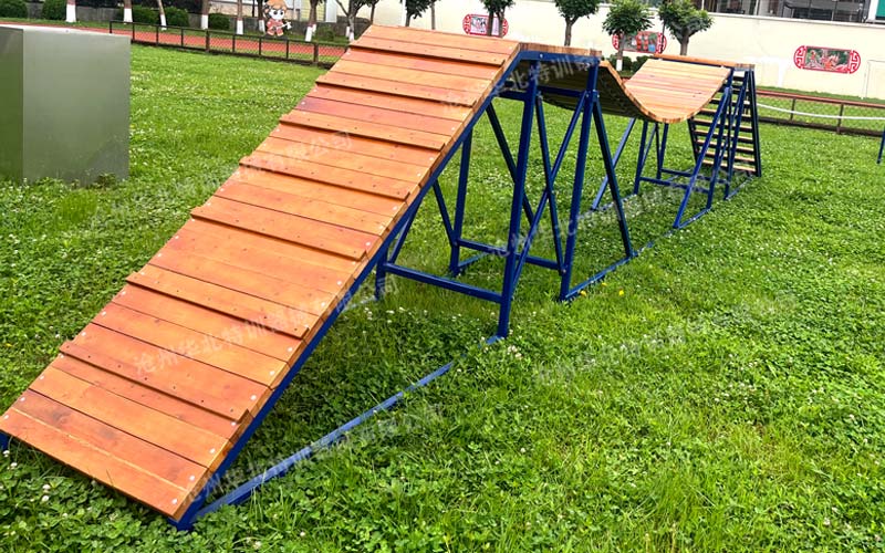 搜救犬敏捷性障礙訓(xùn)練是為提升犬只身體素質(zhì),增強(qiáng)在救援現(xiàn)場(chǎng)通過(guò)各種障礙物的能力。是根據(jù)地震現(xiàn)場(chǎng)的不穩(wěn)定性結(jié)構(gòu)去搭設(shè)的,要求搜救犬能夠根據(jù)訓(xùn)導(dǎo)員指令慢速通過(guò)。不同的場(chǎng)景也對(duì)應(yīng)了地震廢墟的不同現(xiàn)場(chǎng),所以通過(guò)在綜合訓(xùn)練場(chǎng)訓(xùn)練,一方面能夠提高搜救犬通過(guò)障礙的獨(dú)立性、作業(yè)的連續(xù)性,同時(shí)也能提高搜救犬的心理素質(zhì)、連續(xù)作業(yè)時(shí)間,來(lái)幫助它們更好地適應(yīng)地震災(zāi)害現(xiàn)場(chǎng)的環(huán)境,提高搜索救援的能力。