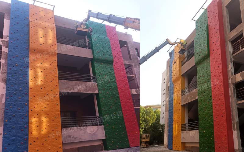 此類(lèi)攀巖墻采用玻璃鋼樹(shù)脂復(fù)合材料制成,不含任何對(duì)人體有害的化學(xué)成分,每塊巖板0.9×0.9米,由各種不同造型的攀巖板拼接成造型豐富的整體墻面。攀巖板顏色可根據(jù)客戶需求定制。