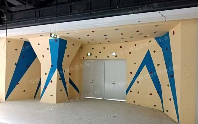 抱石攀巖墻主要由支撐結(jié)構(gòu)、攀巖墻面和攀巖點三個部分構(gòu)成。支撐結(jié)構(gòu)可能是獨立的鋼結(jié)構(gòu)框架或利用現(xiàn)有場地條件制作;攀巖墻面可以由玻璃鋼或木質(zhì)攀巖板制成;攀巖點安裝在每塊巖板上,巖板上預(yù)先設(shè)置多個固定巖點,這些巖點可以通過螺栓孔安裝和拆卸。