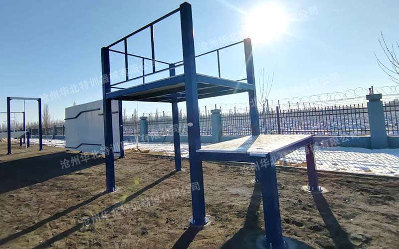 極限越障訓(xùn)練場(chǎng)設(shè)施包含各種復(fù)雜且具有高難度的障礙物,如高墻、攀爬網(wǎng)、繩索橫渡、獨(dú)木橋、高低杠等。這些障礙物的設(shè)計(jì)旨在考驗(yàn)特警隊(duì)員的力量、敏捷性、平衡感和心理素質(zhì)。